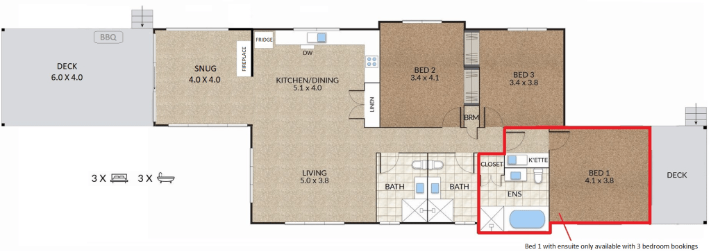 Lovedale Lakehouse can be booked as 3 bedroom or 2 bedroom options. The entire house will be all yours, however the third bedroom will be locked-off and unoccupied for 2 bedroom stays.